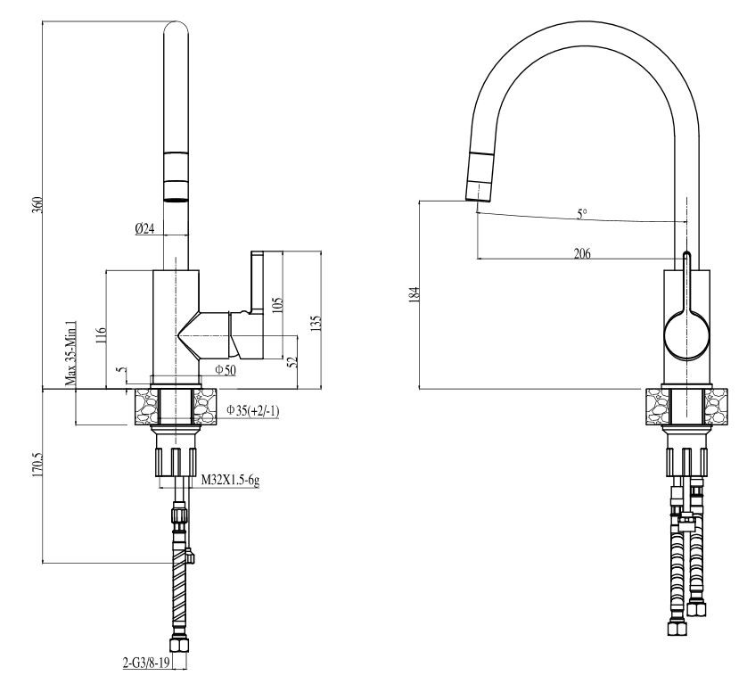 ALVEUS köögisegisti MONARCH TESLA, väljatõmmatav, kuldne