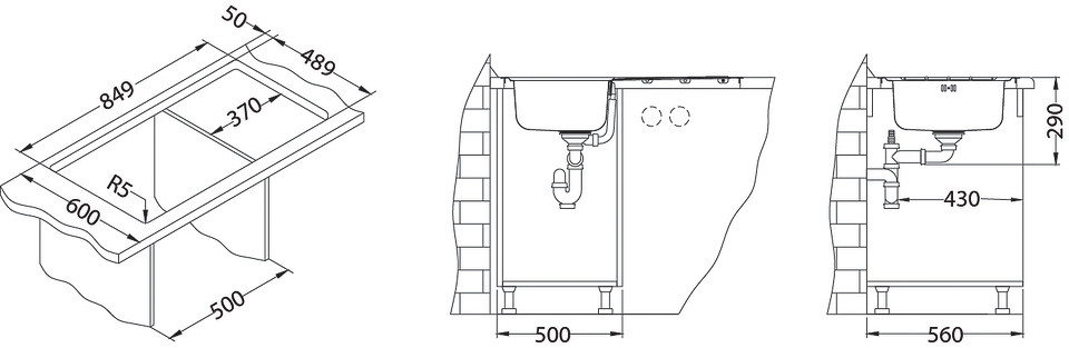 ALVEUS köögivalamu LINE MAXIM 20, 865x505mm, F/S, pööratav, roostevaba teras, satiin