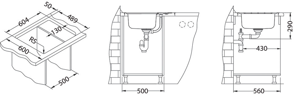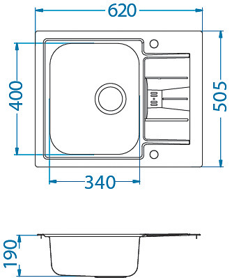 ALVEUS köögivalamu LINE MAXIM 60, 620x505mm, F/S, pööratav, roostevaba teras, satiin