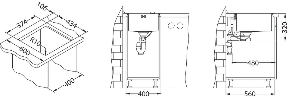 ALVEUS köögivalamu MONARCH QUADRIX 20, 390x450x200mm, F/S, roostevaba teras, antratsiit
