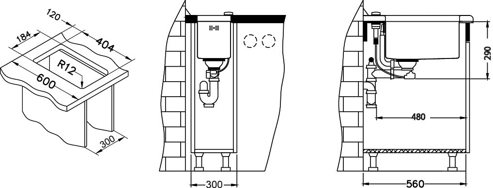 ALVEUS köögivalamu QUADRIX 10, 180x400x175mm, U, roostevaba teras, satiinAllahindlus 20%
