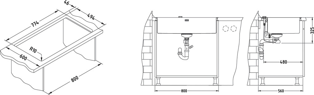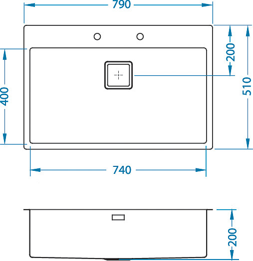 ALVEUS köögivalamu STYLUX 40, 790x510mm, F/S, roostevaba teras, satiin