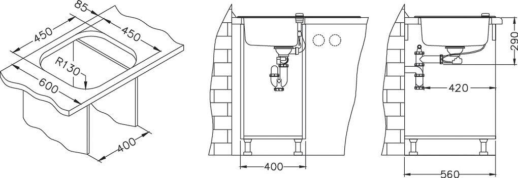 ALVEUS köögivalamu WAVE 10, 620x500mm, I, pööratav, roostevaba teras/must klaas
