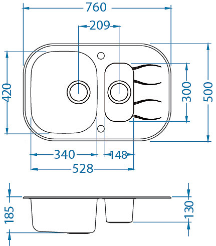 ALVEUS köögivalamu WAVE 30, 760x500mm, I, pööratav, roostevaba teras/must klaasAllahindlus 20%
