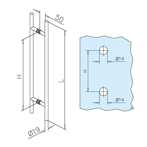 GF käepide MOD53 L-500mm H-300mm ava klaasi 14mm RSt harjatud