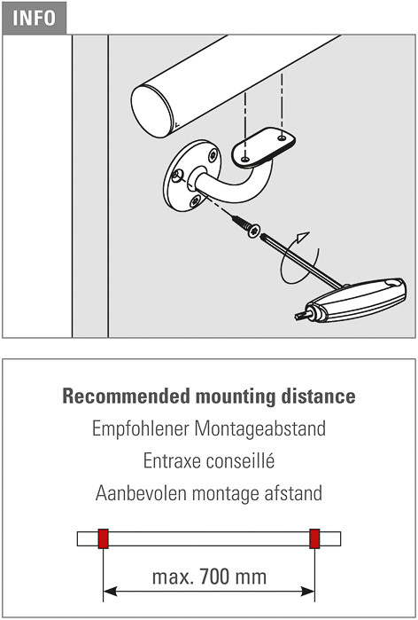 GF käsipuu tugi Ø38,1 seinale toon kuldne läikiv