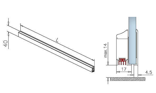 GF lävepakk laskuv klaasuksele DIN parem käsi L-825mm lõigatav -125mm toon hõbe anodeering