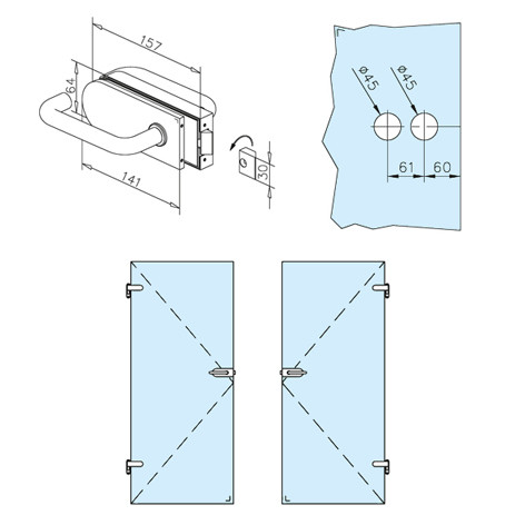 GF lukk klaasuksele koos käepidemega 8-10mm klaas toon RST kroom