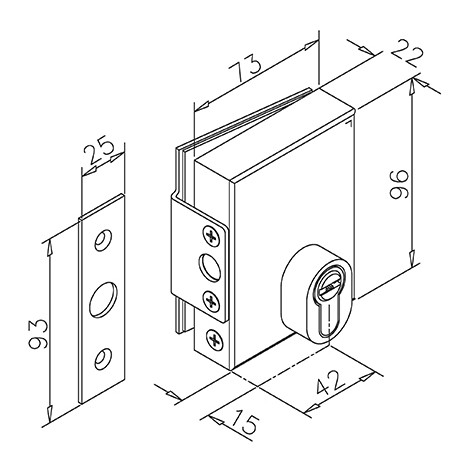 GF lukk sisselõiketa MOD5010 klaasuksele 10mm sõdamik/3võtit komplektis toon RST harjatud