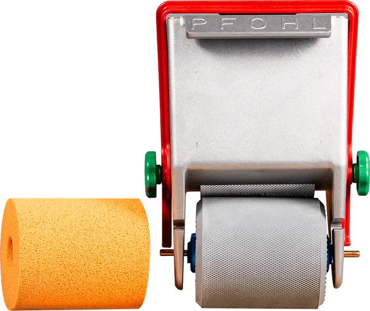 Punane vahtkummist rull on veega lahjendavate liimide pealekandmiseks. Samuti võimaldab liimitava pinna geomeetria hõlpsamat järgimist, profiilsete pindade hõlpsamat liimitamist. Saadaolevad laiused: 75, 150 ja 200 mm.