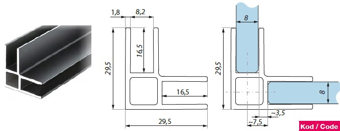 GF lengiprofiil 49.5252 nurgakinnitused kmpl 1 ukseraam