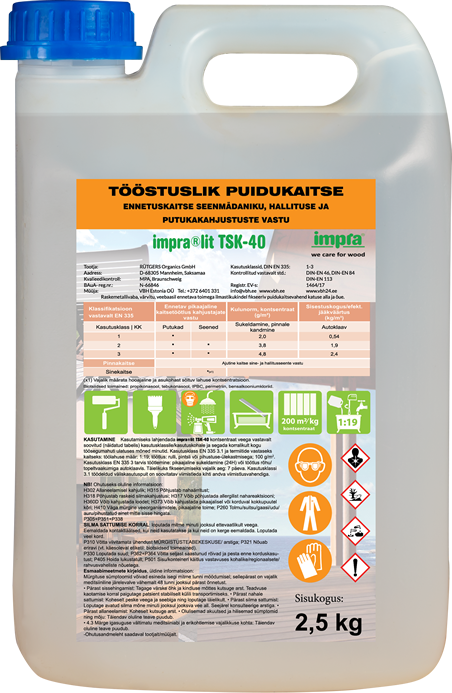 Tööstuslik puidukaitse IMPRA®LIT TSK-40: antifungi- ja termiidikaitse puiduimmutus, 2,5 kg kanister, kontsentraat