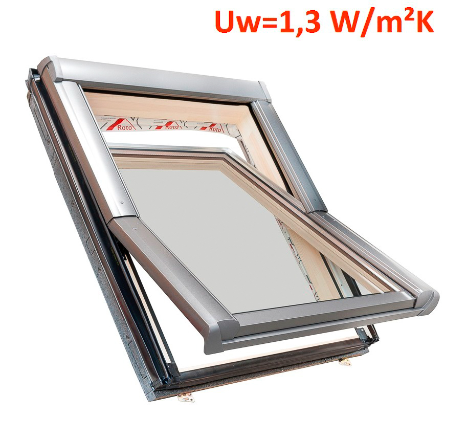 ROTO Katuseaken R45_ 094/140 H200, Puit, lakk, 2x klaas (5_), Uw=1,3, g=52%, soojustusplokiga (+6cm), alt av.