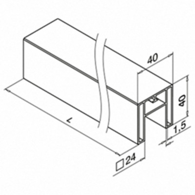 QRAIL EGS U-profiil 40x40 MOD6925 klaasi peale, L5000mm viimistlus hõbe anodeering