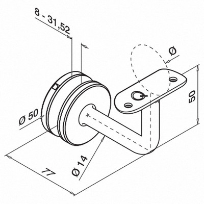 QRAIL käsipuu kinniti MOD0117 klaasile kumera tallaga Ø 48,3 AISI316 harjatud