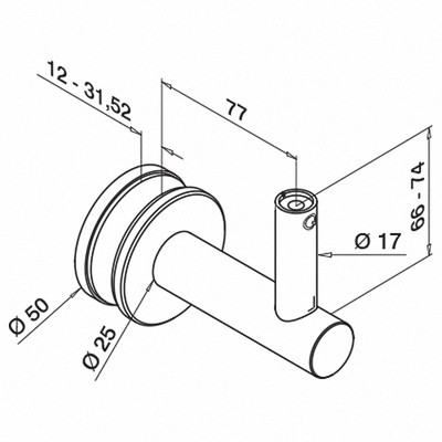 QRAIL käsipuu kinniti MOD0148 klaasile sileda tallaga AISI304 harjatud