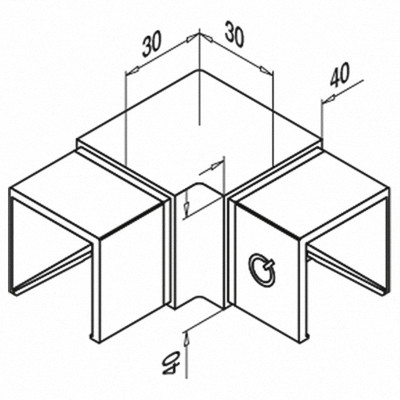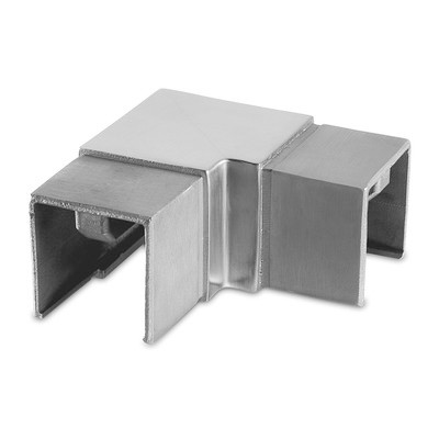 QRAIL liitmik MOD6313 U-reelingule 40x40x1,5mm 90° horisontaalne AISI316 harjatud