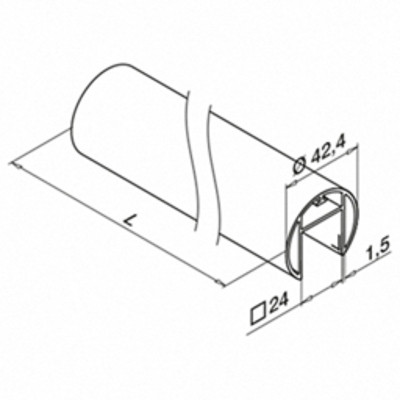 QRAIL U-reeling klaasi peale ümar Ø 42,4, U-24x24, L=5m, sisekasutusalumiinium EV1 anodeering