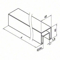 QRAIL U-reeling MOD6925 kandiline Ø 40mm U=24x24mm pikkus 2,5m AISI316 harjatud